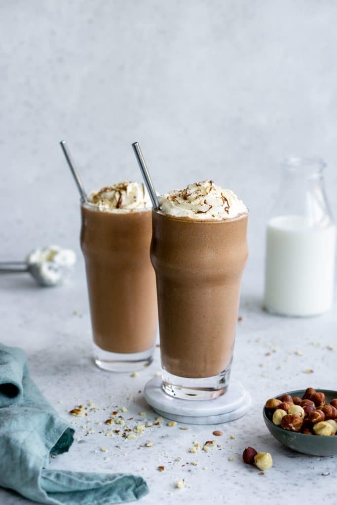 - Pour into a glass top with whipped cream and hazelnut and chocolate shavings if desired.